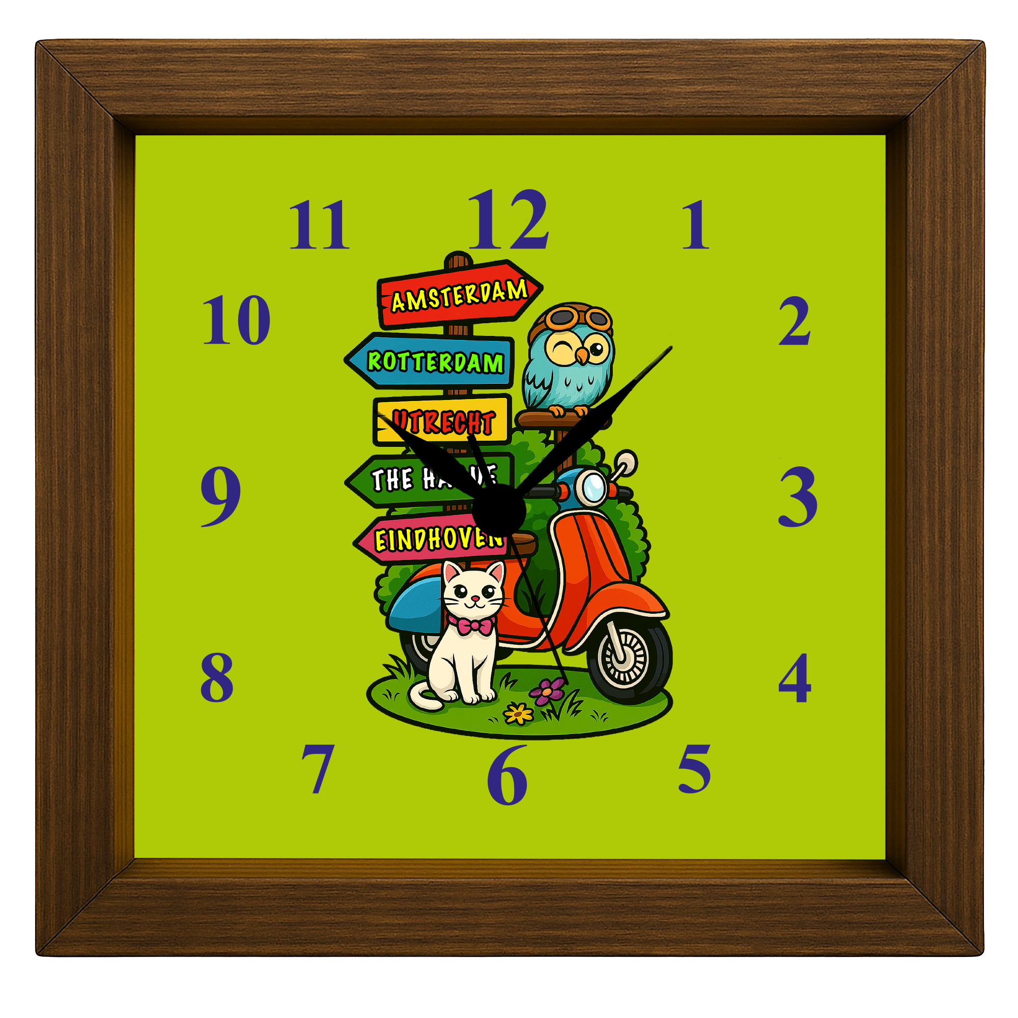 Kalın ahşap çerçevesi ve hediye temalı baskısıyla masa üstünde şık bir görünüm sunan dekoratif bir masa saatidir. Hediye kutusu ile teslim edilir.
