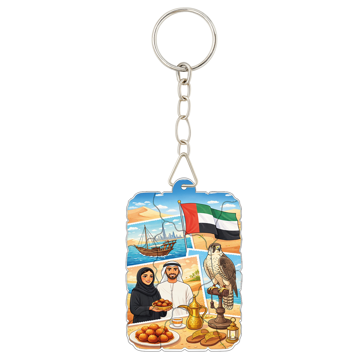 Dayanıklı plastik malzemeden üretilmiş anahtarlık, her iki yüzüne uygulanan yüksek çözünürlüklü renkli baskısıyla uzun süre kalıcı bir görünüm sunar. Metal anahtarlık halkası sağlam, güvenilir ve günlük kullanıma uygundur.